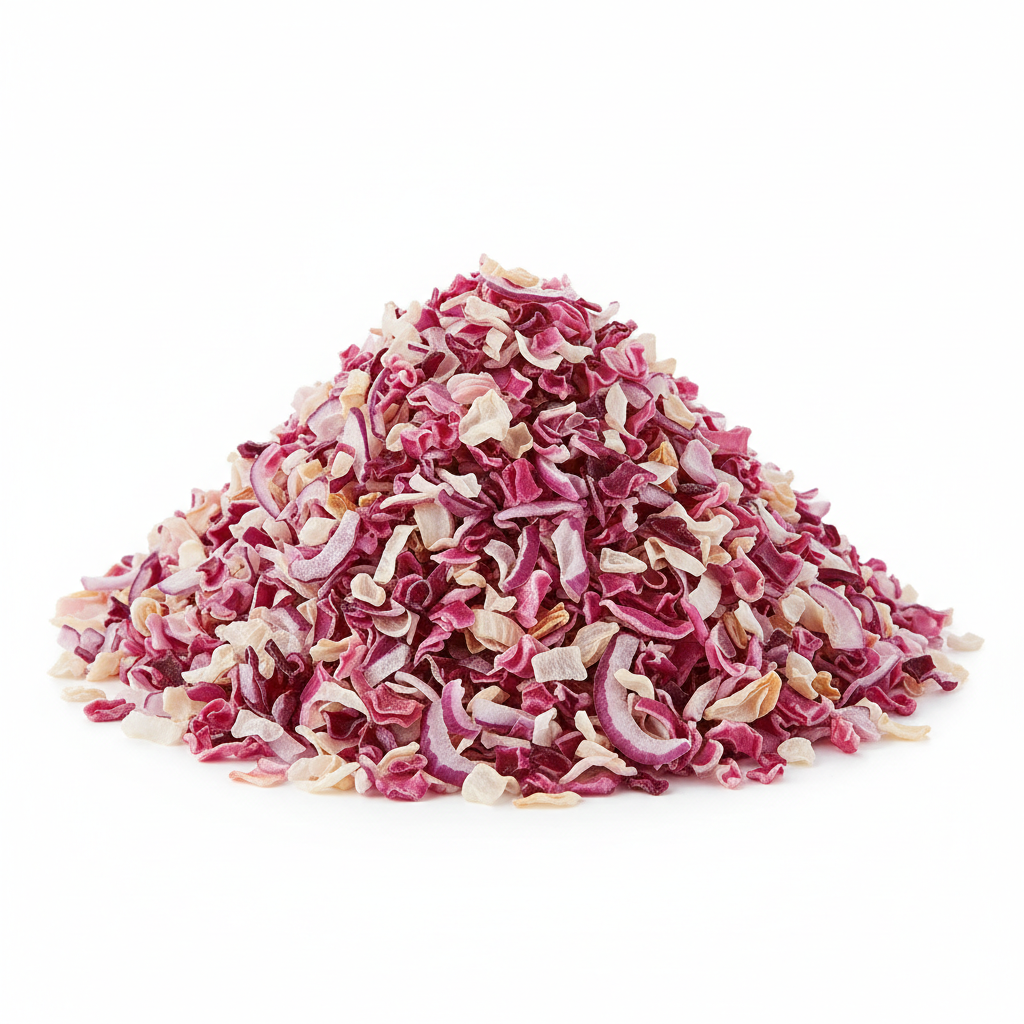 Carefully selected fresh red onions are processed using advanced dehydration techniques to retain their natural flavor, aroma, and nutritional value. The controlled drying process ensures uniform chopped size, extended shelf life, and excellent rehydration properties.