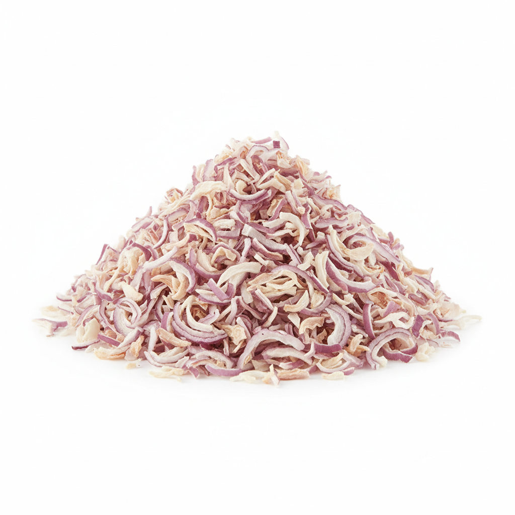 Carefully selected fresh red onions are processed using advanced dehydration techniques to retain their natural flavor, aroma, and nutritional value. The controlled drying process ensures uniform flakes and kibbled form, extended shelf life, and excellent rehydration performance.